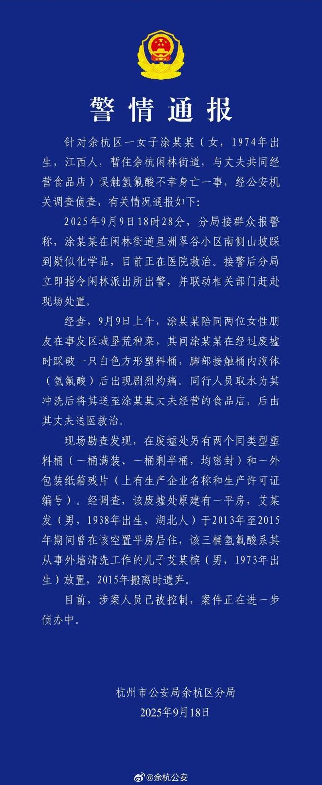 9月18日,杭州公共安全局尤哈地区的分支发布了一个通知,公告了一名名叫Tu Moumou的妇女的糟糕死亡,意外地触及了氢氟酸,称涉及的人受到了控制。图片显示了有关相关部门的警方报告:事件确认安全的土地。死者的妻子:三天的营救时间都花了30万元人民币。该文件是从相关的尤哈地区部门获悉的,确认土地是安全的。事件发生后,当地的街道还派人陪同死者的江西家人举行葬礼。该家庭尚未提出经济补偿,主要重点是葬礼。该文件叫Tu的妻子Tu先生,另一方说,他没有收到警方的通知,请注意调查结果。 “我的妻子现在只是在爬行。” Tu先生的语气令人心碎。他说他仍然是我n江西的n镇,再也没有回到杭州。 Tu先生回忆说,他已将妻子送往三家医院进行紧急治疗。最初,他去了江林街的一家当地医院,最后在智江大学医学院第二会分支机构医院的Binjiang校园里。在三天的营救中,它的成本超过30万元。 “我花了很多钱,但我仍然无法救他。我想念我的妻子。” Tu先生认为,当地负有监管责任,他的弟弟建议他与政府定居,但他的意愿仍然很难平静下来。他进一步说:“我真的很伤心。枕头的用途是什么。同一天,已故的儿子告诉《红星新闻报道》,涉及的人将来将承担责任。警方报告发布后,该报纸联系了案件涉及的人Ai Maubin的弟弟。很长一段时间以来一直没有联系,尚不清楚他的兄弟已经从现场撤离。 Ai Mubin和他的弟弟都是Yuha区Xianlin Street的注册个人工业和商业家庭,都在同一地址。 AI Mubin的公司于2024年被取消,并于2013年成立。服务类别包括内部和外部装饰和清洁。称为AI Mubin的论文很多次,但没有人接电话。三桶氢氟酸被遗弃了10年。律师:诉讼的15年限制法则,在不小心处理氢氟酸后,Tu Moumou被送往医院营救。在当地警察发布的最新通知书中,有人指出,在调查后,Ai Mubin的三桶氢氟酸是从事清洁外墙的Ai Mubin放置的,并在他M时放弃了Ovedin 2015。目前,所涉及的人受到控制。那么,放弃了十多年的迫害时期吗?参与熊案的人涉及哪些法律责任?律师说,废弃者的行为可能涉及环境污染罪,相应的限制定律为15年。 Henan Zejin律师事务所的董事Fu Jian认为,在这种情况下,被废弃的人放弃可能涉及环境污染罪。根据刑法的规定,在环境污染罪的组成部分中,由于违反了国家法规,泄漏,垃圾场或处置放射性废物的行为表达,其中包含疾病的传染性病原体,有毒物质或其他有害物质。 Crimethis的法定最高刑期为7年。上述监禁对应于15年的法律,因此案件尚未到期。 f乌吉安说,同时,如果根据民法典的规定丢失或放弃了危险物质,则所有者或经理应承担责任。在这种情况下,废弃的人还必须向死者的家庭支付医疗费用,葬礼费用,死亡支付和精神伤害补偿。资料来源:综合企鹅新闻,达赫每日