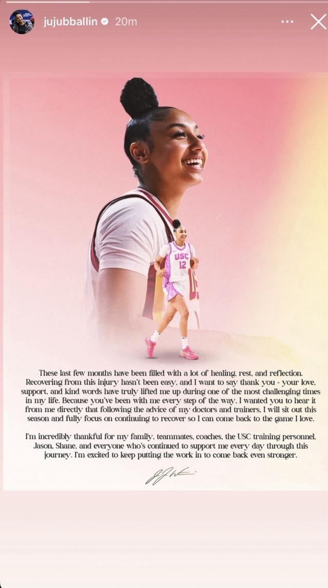 9月29日NCAA女篮球明星直播,南加州大学王朱·沃特金斯(Zhu Watkins)今天在社交媒体上宣布,由于受伤,她将错过整个2025-26时期。到今年3月底,沃特金斯在比赛中右膝盖严重受伤,比赛结束后被诊断出ACL撕裂。他去了今天。沃特金斯是一位伟大的年轻球员。去年,在ESPY(年度最佳体育表演奖)颁奖典礼上,他击败了马刺Wenban Yama,NFL休斯顿德克萨斯四分卫CJ Stroud和体操运动员Halle Bryant,以赢得了运动员奖(Chasing Dreams The Award The Award Erchans)的最佳成功。 NBA球迷应该在23-24赛季了解Wenban Yama的爆炸 - 他首次当选为“ Slam”杂志的封面,但朱朱·沃特金斯(Zhu Zhu Watkins)的表现可能会更加惊人。 Naritor他的一些亮点 - ★作为高中五星级学生,朱朱沃特金斯与克拉奇体育公司签订了合同S位于他的大四时,成为该公司的第一位女运动员代表。 ★他在2023年11月6日的第一个首次亮相职业生涯,在比赛中获得32分,USC在1990年击败了俄亥俄州立大学83-74,超过了Leslie(WNBA传奇),并创造了USC首次USC新生游戏的记录。 ★在2023年11月22日,他获得了31分和12个篮板,并在大学生涯中获得了他的第一个双打。他连续三场比赛还获得30分。谢丽尔·米勒(Cheryl Miller)(雷吉·米勒(Reggie Miller)的兄弟,1984年奥运会冠军,2个NCAA冠军和3届年度最佳Naismith球员)连续30多次记录。 ★2024年1月14日,他获得了32个蓬托斯和10个篮板,帮助南加州击败了加州大学洛杉矶分校的第二名,加州大学洛杉矶分校的第二名是73-65。 2025年是2010年Naismith(WNBA MVP)篮球运动员最好的女篮球运动员。在下一场比赛中,她获得了30分,7个篮板和5次助攻,他们超过了Paula McGee并取得了单赛季得分新生在南加州南加州队的历史记录。 ★2024年4月1日,南加州大学以73-80击败了Kangda,并在精英四分之一决赛中停下来,但朱Zhu Watkins以920分获得29分。 D1新生得分超过了40年前蒂娜·哈钦森(Tina Hutchinson)创造的898分。 ★在2024年美联社全美一线队中选出(阵容还包括WNBA 1号选秀克拉克,第二顺位边缘和明年的Pick著名著名的Peppa Bux),Pac-12最佳阵容,Pac-12最佳防守球队,Pac-12最佳防守球队,Pac-12最佳新生阵容和PAC-12最佳新生阵容。他击败了斯坦福大学,后者第二次排名第二,并赢得了Pac-12冠军。 ★2025年4月,他当选为Naismith年度学院最好的篮球运动员。他受伤前的平均比赛数量为23.9分,6.8个篮板,3.4助攻,2.2抢劫和1.8盖帽。